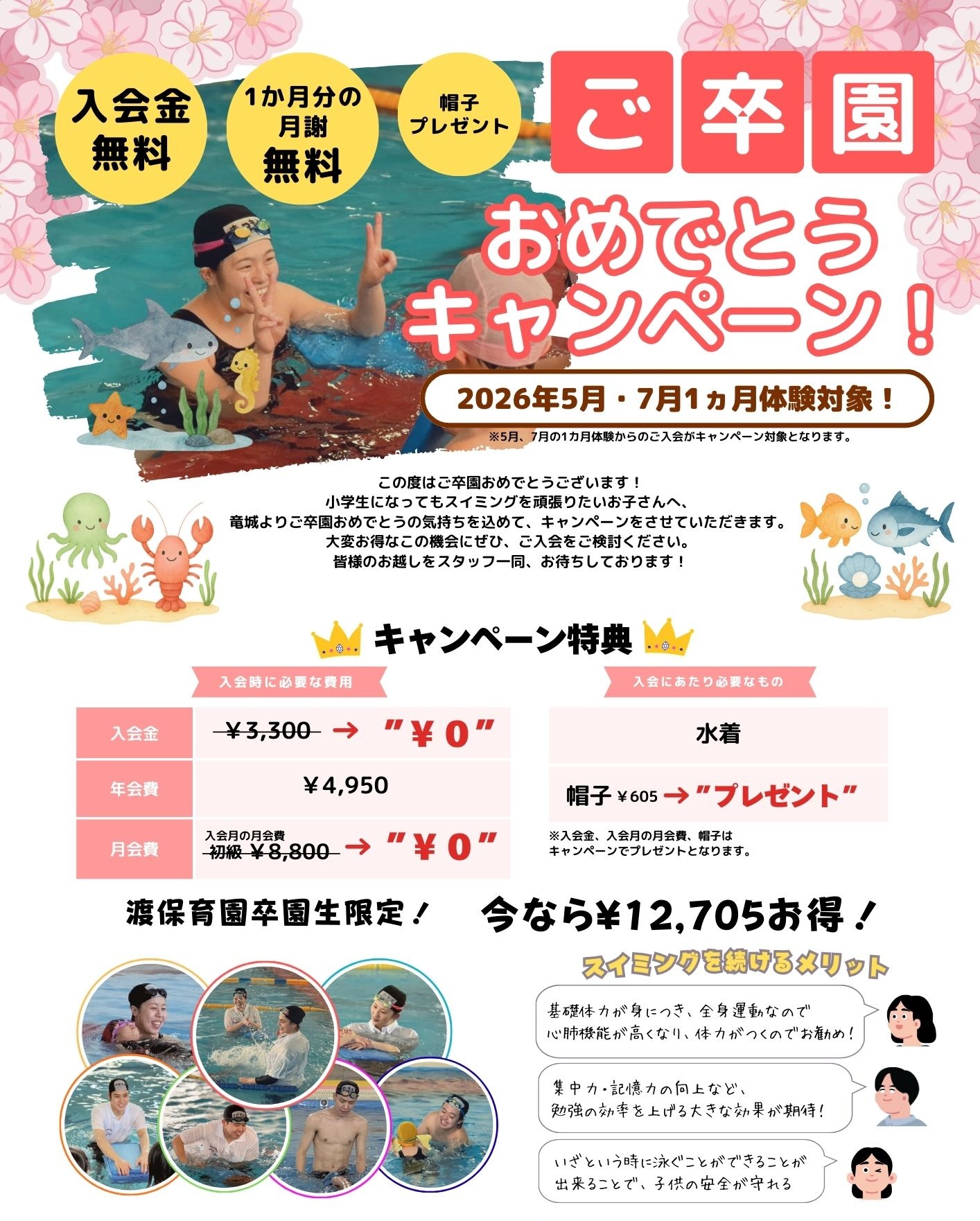 渡保育園卒園生限定 おめでとうキャンペーン!|岡崎竜城スイミングクラブ